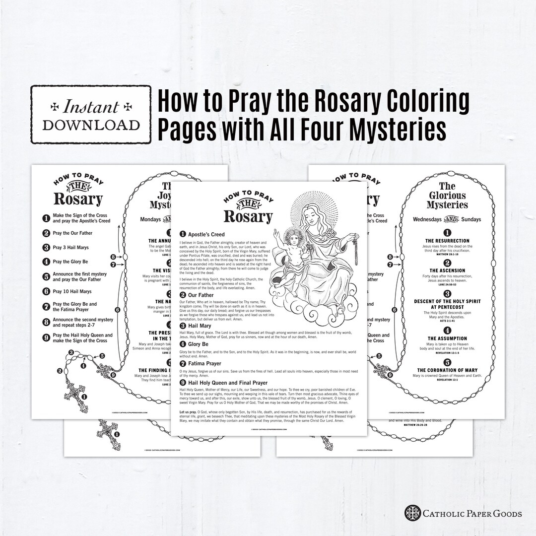 How To Pray The Rosary With Prayers And Mysteries Catholic Coloring Pages Catholic Prayers 5 Printable Coloring Pages PDF Kid Rosary Etsy M xico