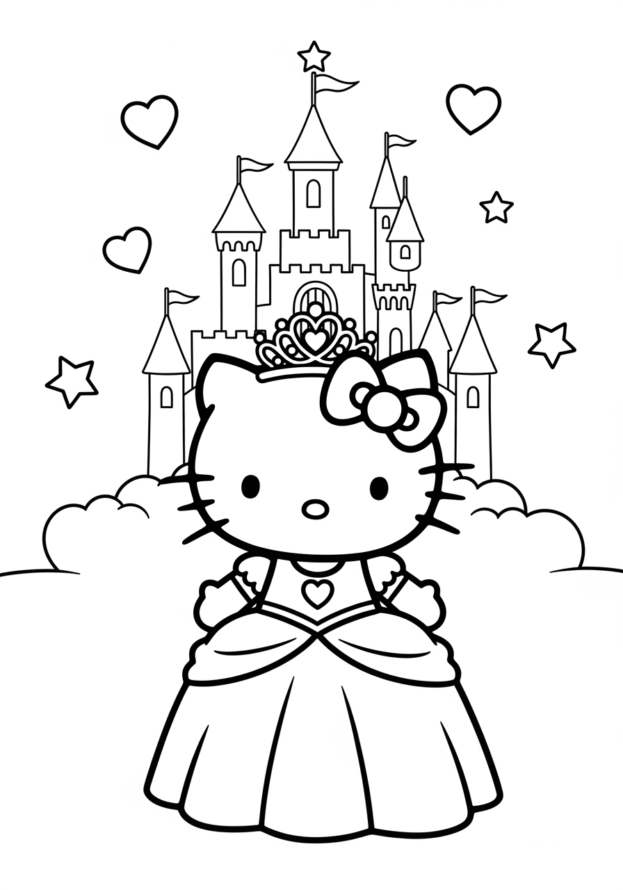 Hello Kitty Princess Coloring Page Free Printable
