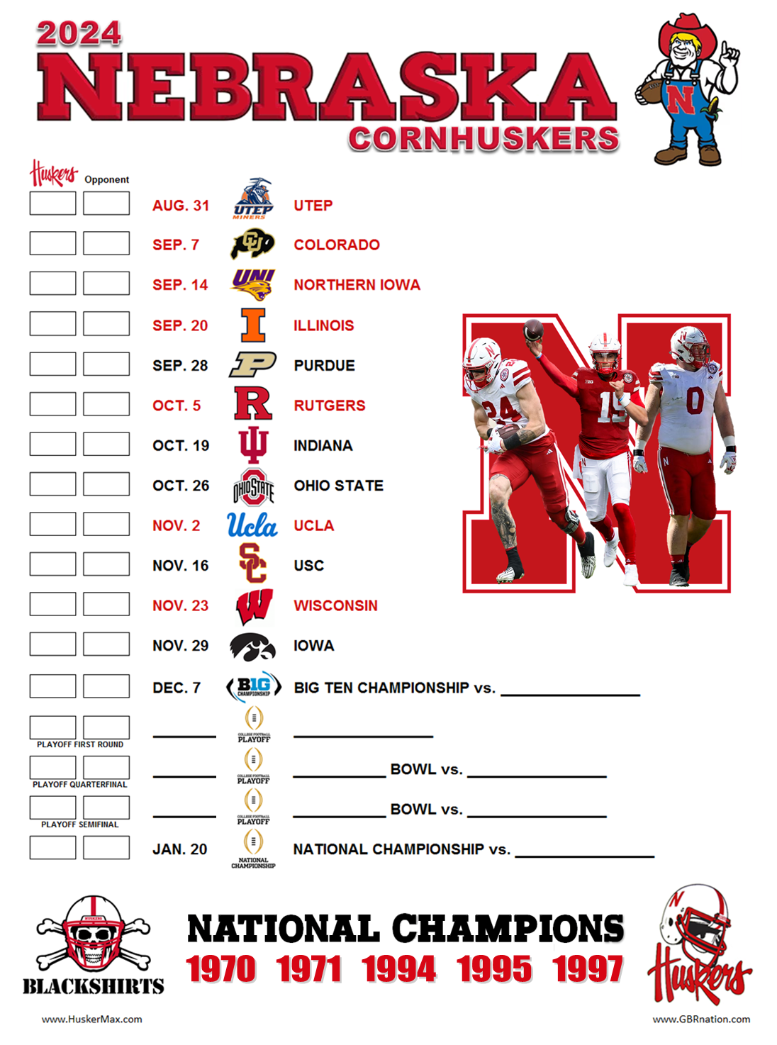 Printable 2024 Nebraska Football Schedule August 16 2024