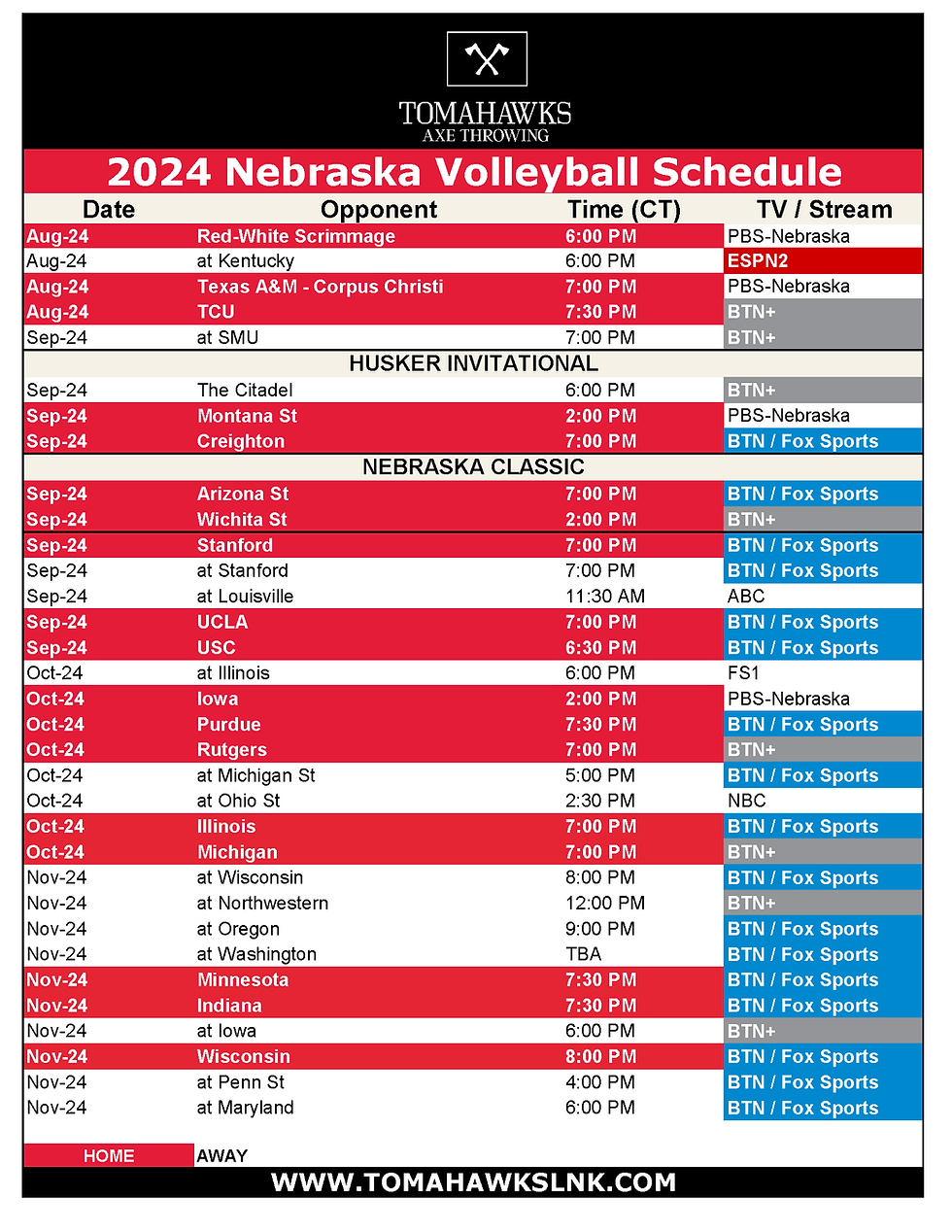 Huskers Announce 2024 Volleyball Schedule University Of Nebraska Official Athletics Website