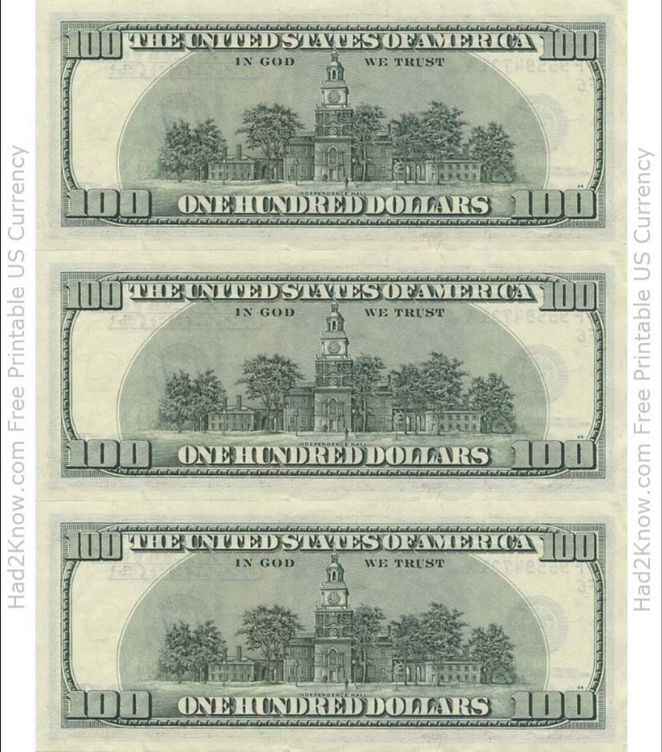 Printable Money One Hundred Dollar Bill