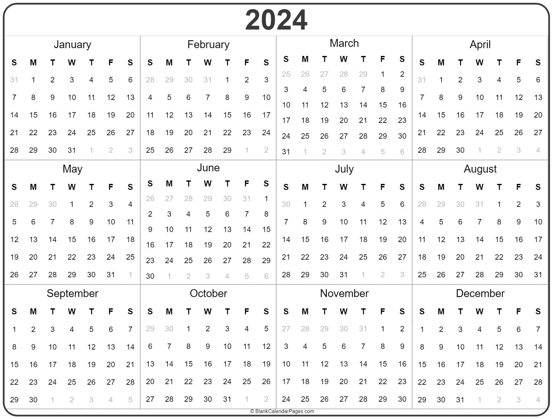 2024 Year Calendar Yearly Printable