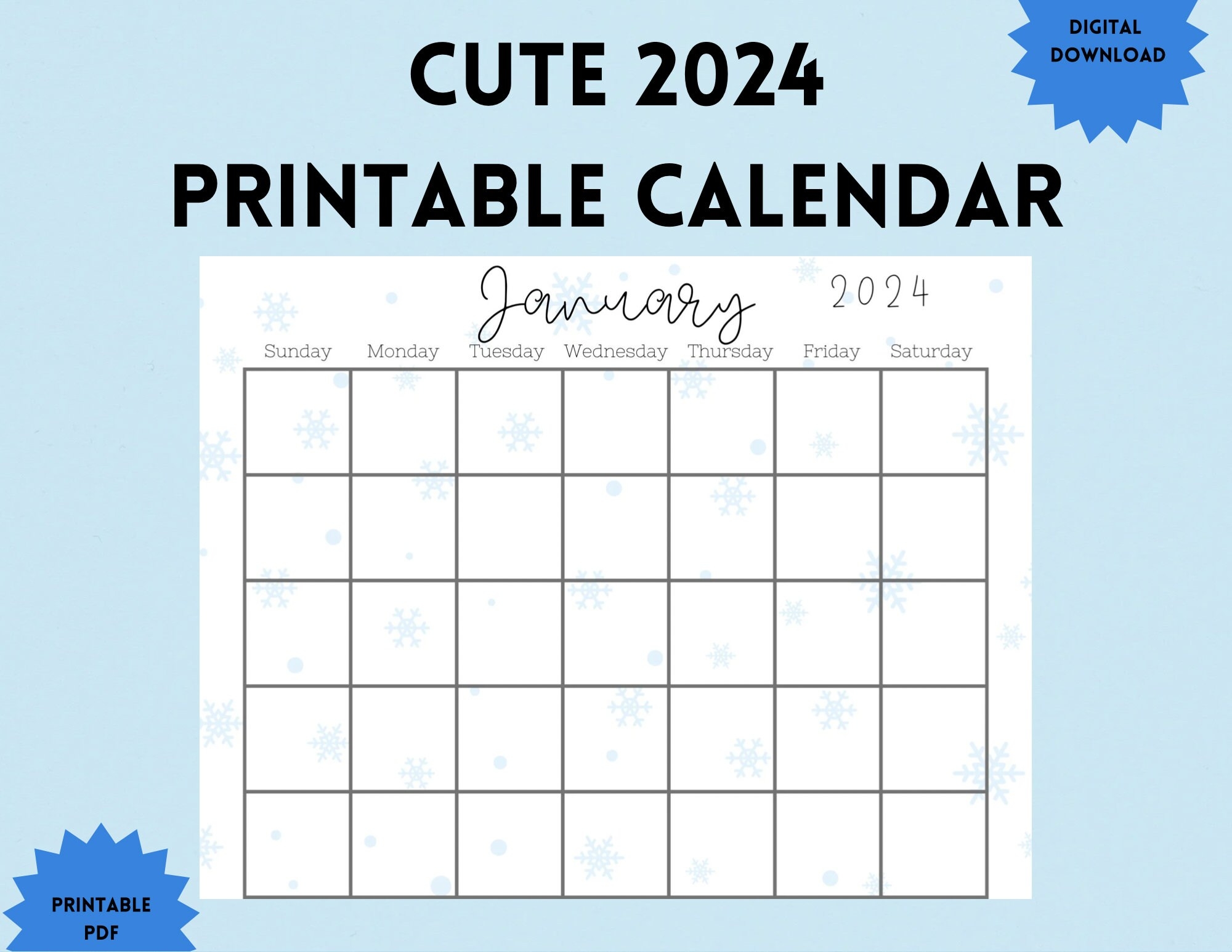 Cute 2024 Printable Calendar Etsy