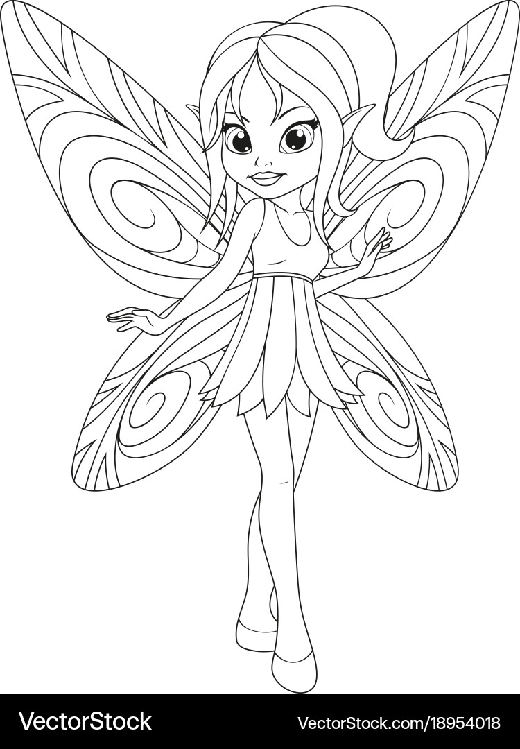 Coloring Cute Fairy With Wings Royalty Free Vector Image