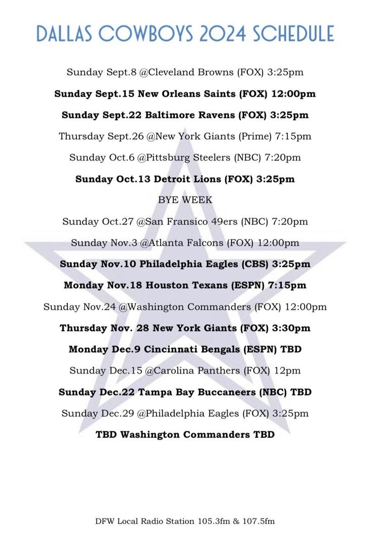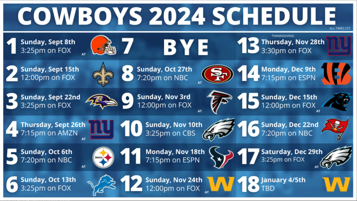 Dallas Cowboys Schedule For 2024 25 Released Who Do They Play Wfaa