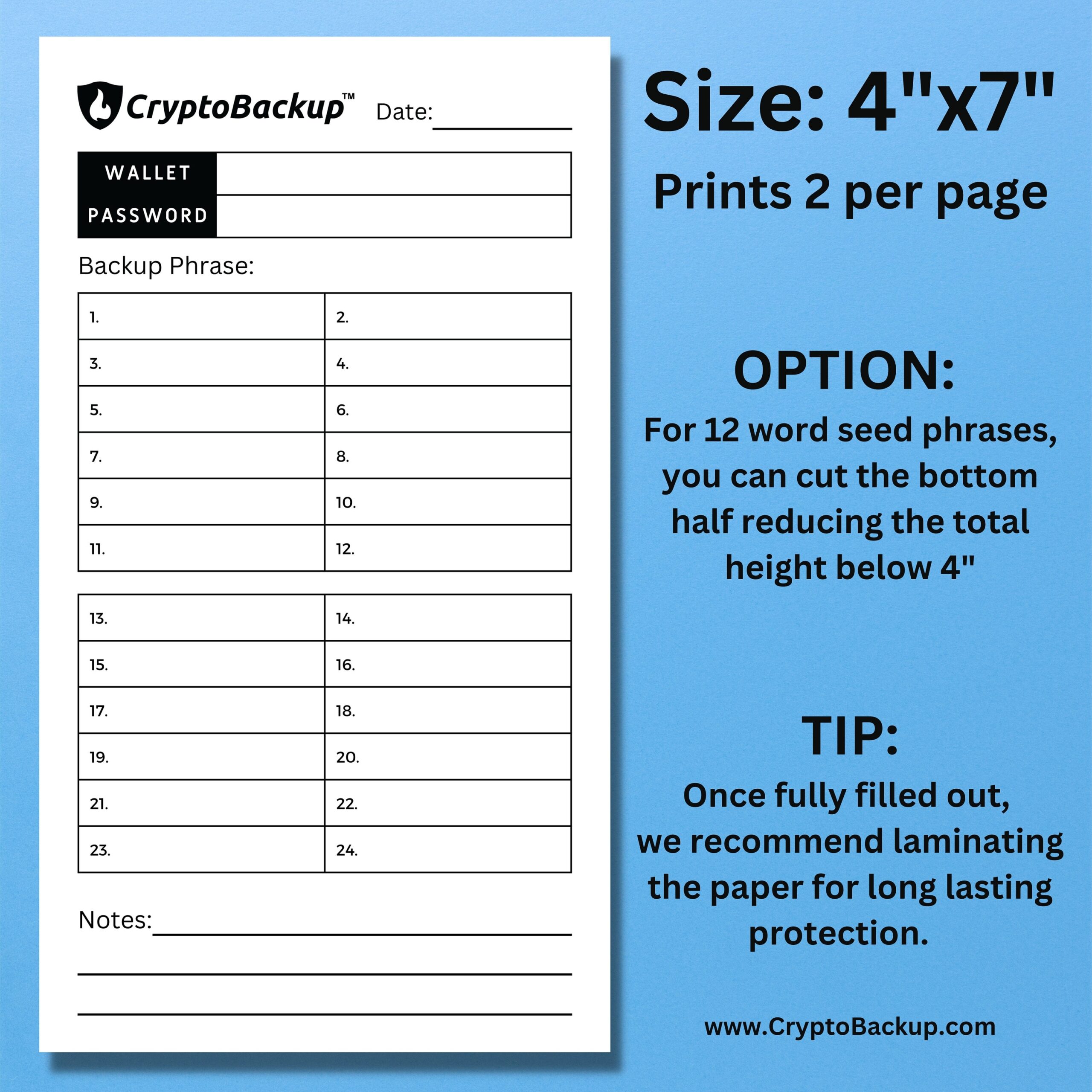 Crypto Backup Seed Phrase Template Printable Crypto Wallet PDF Etsy