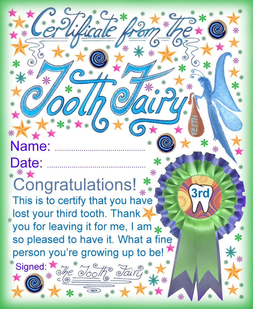 Tooth Fairy Certificate Award For Losing Your Third Tooth Rooftop Post Printables
