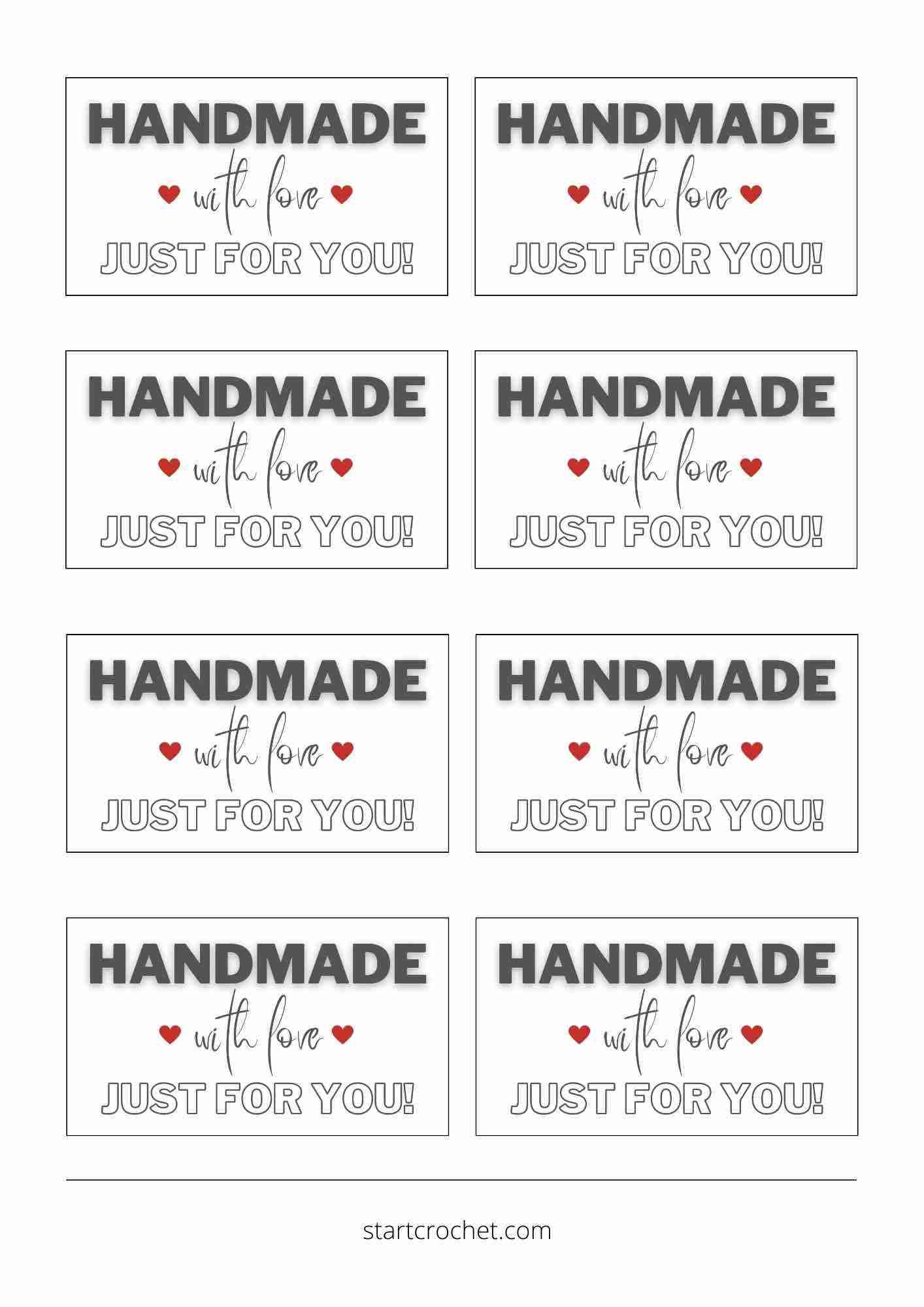 Handmade With Love Tags PDF Printable Start Crochet