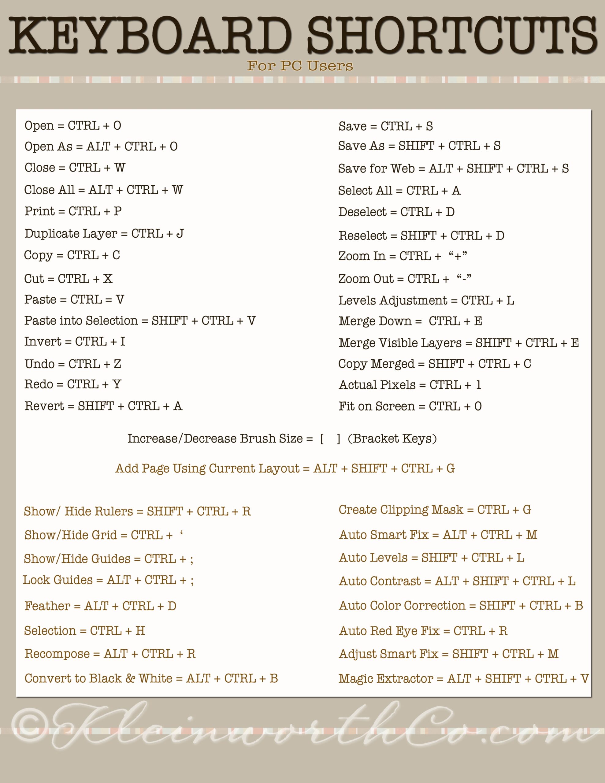 Keyboard Shortcuts For PC MAC Kleinworth Co