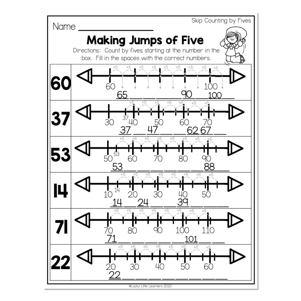 Skip Counting Number Line Worksheet 1 Skip Counting By 5 Lucky Little Learners